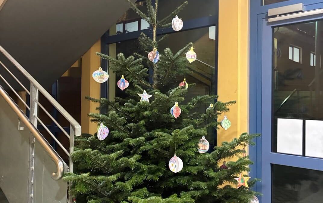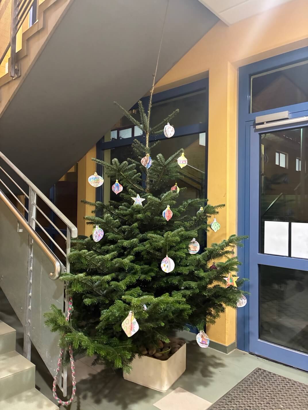 Auch im Jahr 2025 hat sich der Elternbeirat um das Aufstellen eines Weihnachtsbaums in der Schule gekümmert.